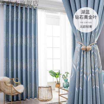 黛菲娜カーテンの完成品北欧風のリビングルームの遮光布地の断熱サンバイザーのカーテンは現代8686-半遮光布-打孔完成品の幅1.9*2.7メートルの高さ*1枚です。