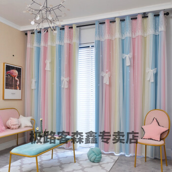 梦幻窗帘网红竖百叶梦幻窗帘透光不透人レース帘房间网红公主风卧室梦幻帘飘窗遮光儿童房女孩リビングルームカーテン2021年 公主粉 绣花款 (加厚高精密) 每米定制(挂钩款)【图片 价格 品牌 报价】-