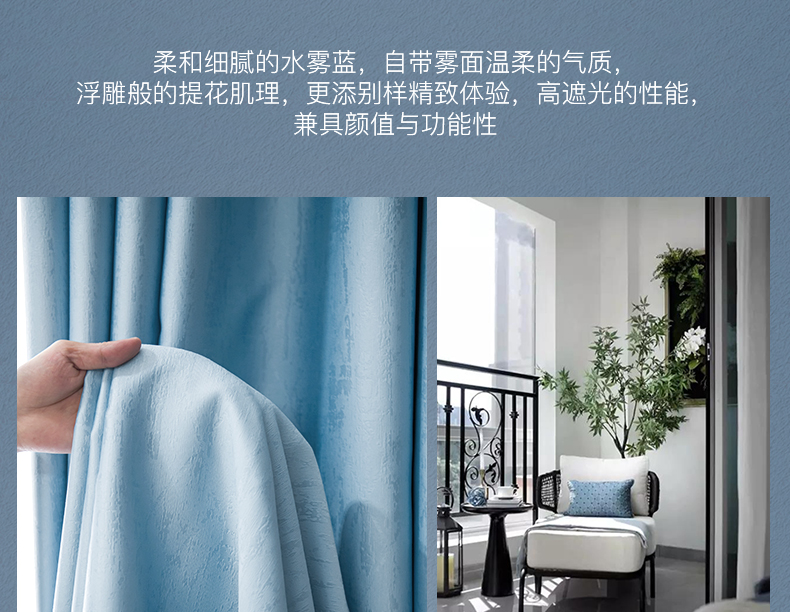 【金蝉赫罗拉】金蝉窗帘成品遮光降噪客厅卧室现代轻奢打孔窗帘ファブリック生地 赫罗拉-水雾蓝 【打孔-双开】适用宽2.0-2.5m;帘高2.45【行情 报价 价格 评测】-