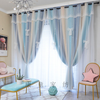儿童房窗帘房间网红公主风卧室梦幻帘飘窗遮光儿童房女孩リビングルームカーテン2021年新款 公主粉 绣花款 (加厚高精密) 每米定制(挂钩款)【图片 价格 品牌 报价】-