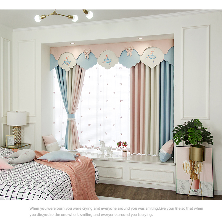 新款窗帘公主风跳舞女孩甜美粉色加厚遮光儿童房卧室飘窗短帘可爱 窗幔一米 限时加工