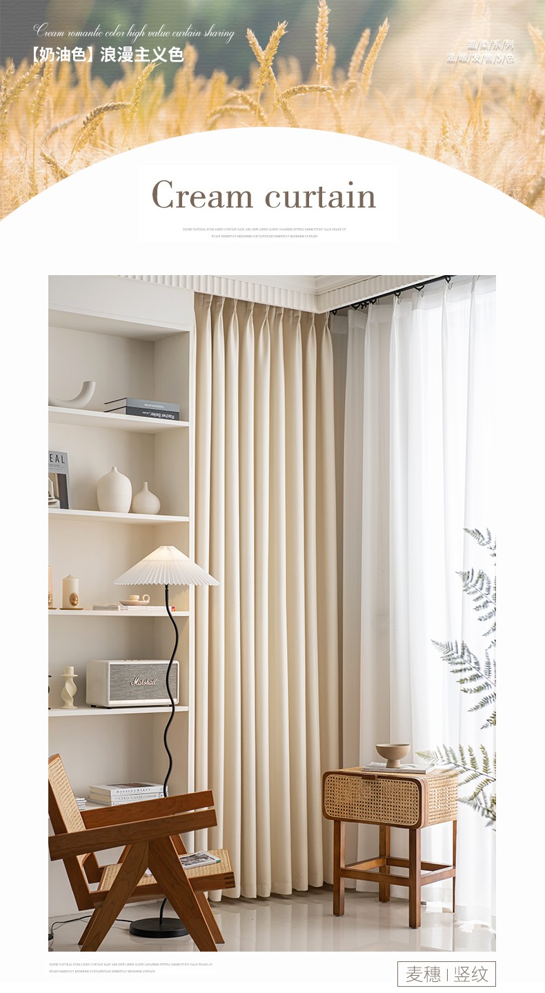 GHGK 日式奶油色窗帘卧室ins风2021年新款客厅棉リネン加厚遮光简约现代ファブリック生地定制既製カーテンファブリック生地帘挂钩打孔 宜睡-奶油色 其他尺寸联系客服/每米挂钩款
