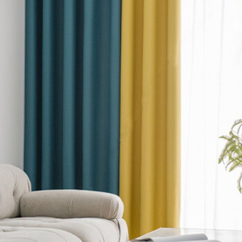 西漢家纺 【窗帘+伸缩杆】免打孔罗马伸缩杆窗帘全遮光简约成品卧室阳台客厅飘窗窗帘ファブリック生地防晒隔断遮阳帘 孔雀蓝+明黄双拼 适用宽2.6-3.1米【帘高2.0米】双开