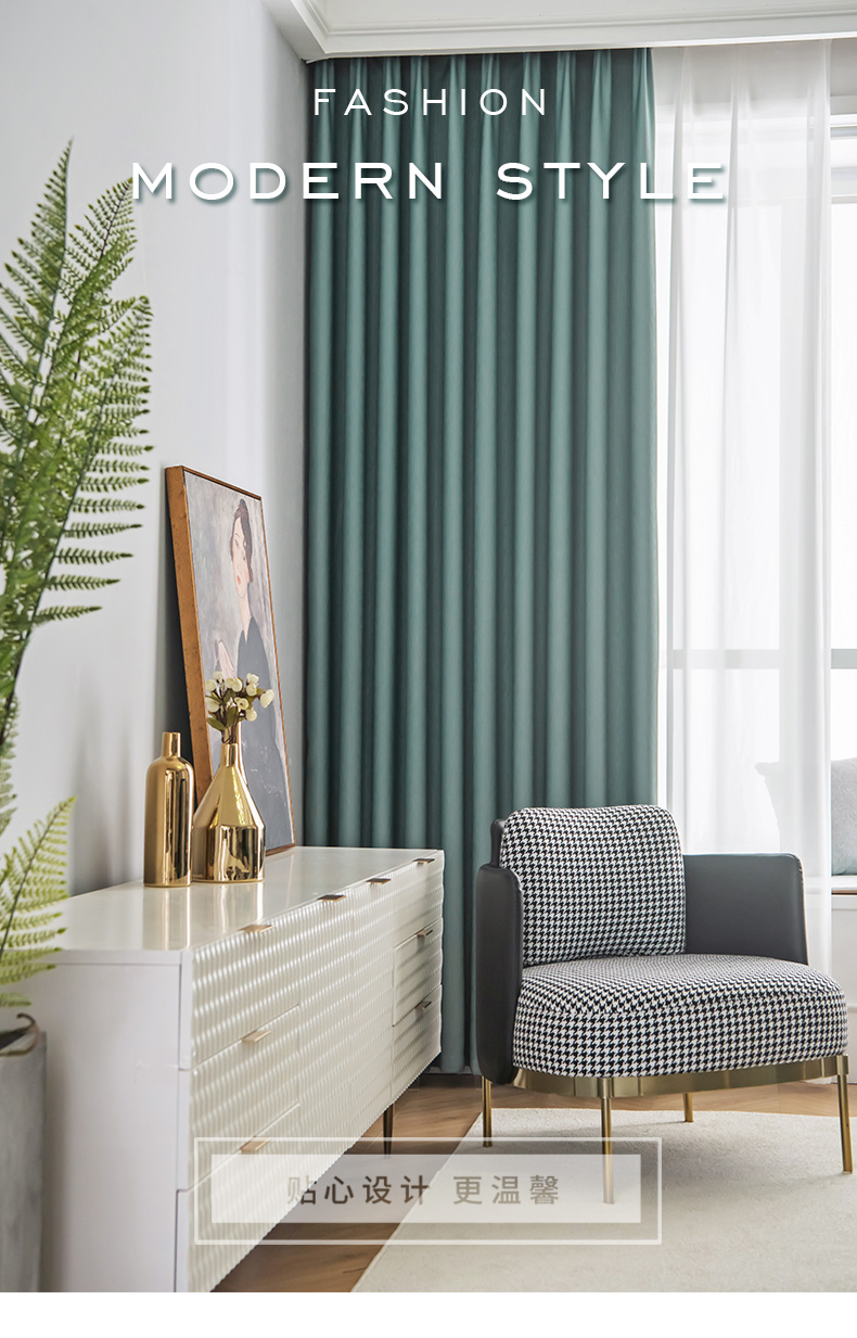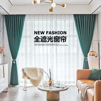 赫伊莎 北欧轻奢全遮光遮阳窗帘轨道挂钩成品遮光ファブリック生地 芊丝锦-深绿色 挂钩款-2.0米宽*2.5米高/1片【图片 价格 品牌 报价】-