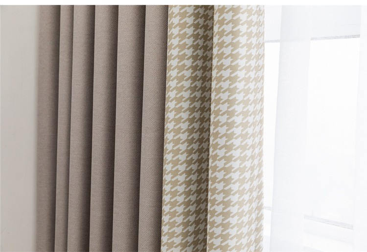飛爾歌徳(FG)ins北欧風のスプライス粒子麻プリント千鳥格高遮光カーテンリビングルームの書斎のカーテンダウンカーテン完成品AB版カーテンライトカレー+ベージュプリントカーテン(窓なし)幅3 m*高さ2.7 m-フック式一枚(高さ変更可能短い)