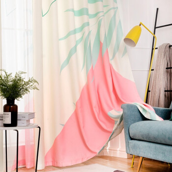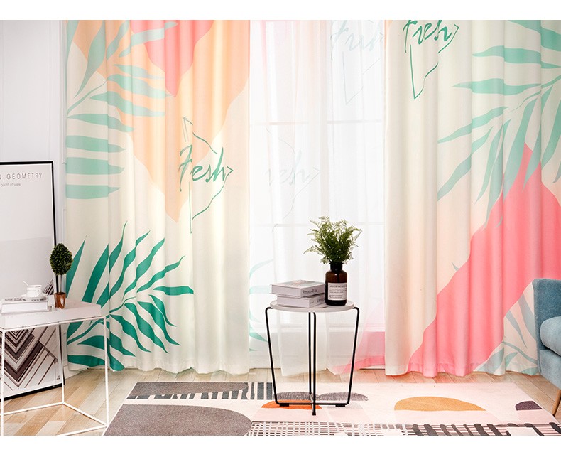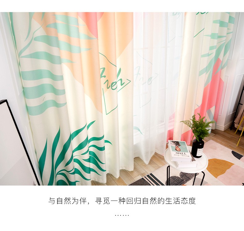 黛菲娜カスタムカーテン北欧简约现代绿植小清新リビングルームの床に降り注ぐ遮光窓のカーテン女子生徒9868-半遮光布-打孔カスタム1メートルの料金【オンラインカスタマーサービスに連絡する】