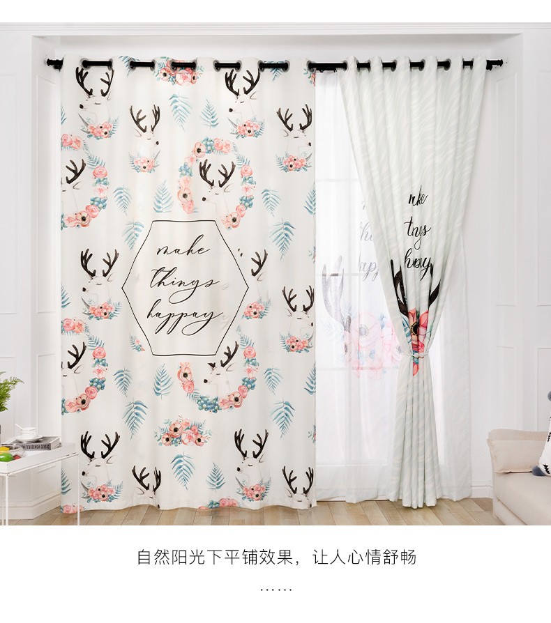 黛菲娜2019新型のカーテンは北欧緑植客間寝室の床のカーテンを遮光します。7987-半遮光布-打孔完成品の幅3.4*2.7メートルの高さ*1枚(高可改)