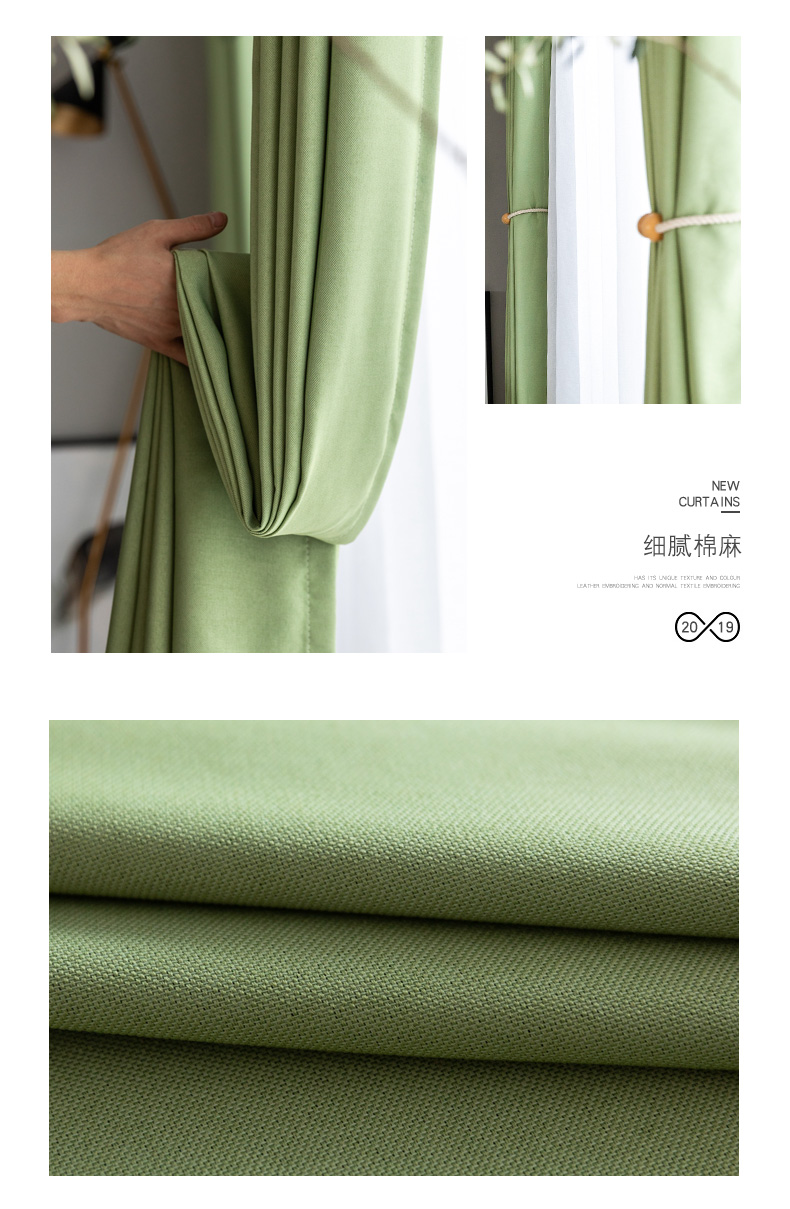 カスタマイズして顧客サービスの現代簡単な純色の綿麻のカーテンの布地を注文して、亜麻北欧風のカーテンを厚くして、寝室の客間に遮光した黒糸の絨毯の麻の緑の幅を2メートル*高さ2.5メートルリンクします。