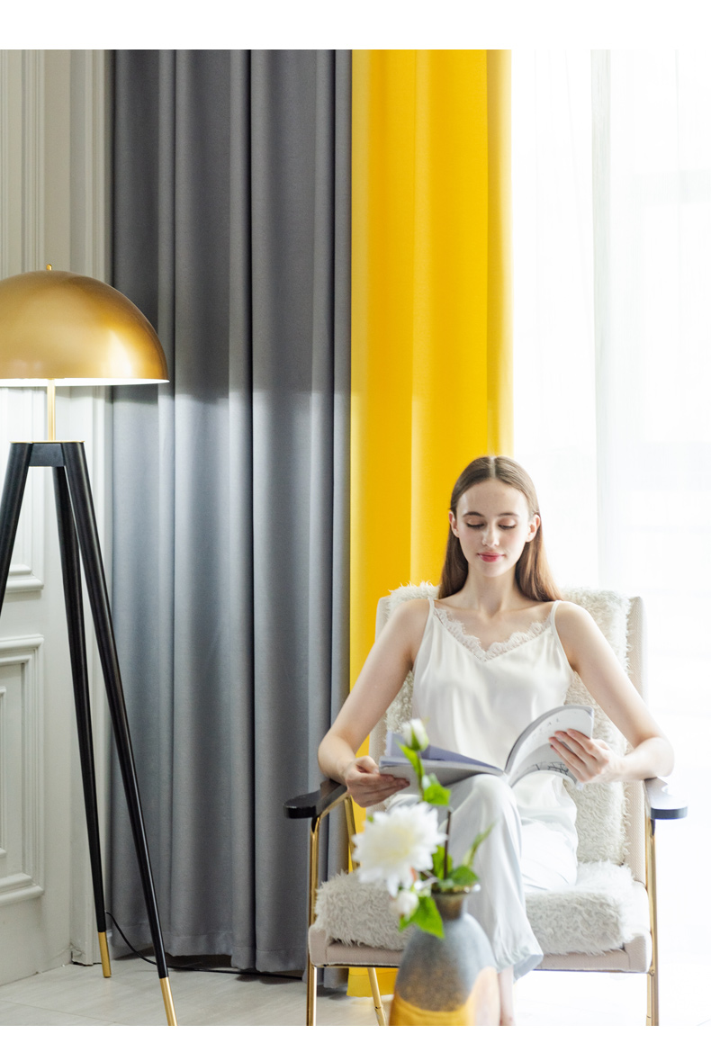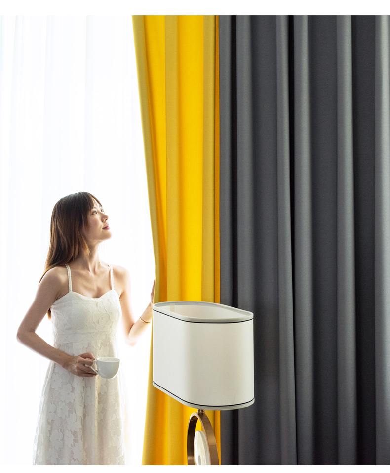 Easyfamimilyカスタム北欧風カーテン布製品リビングルームinsダブルカラースプライスネット赤い綿の遮光床の窓のカーテンが簡単に現代の灰色+黄色のスプライス(3:1)カスタム韓国折りたたみ加工/米
