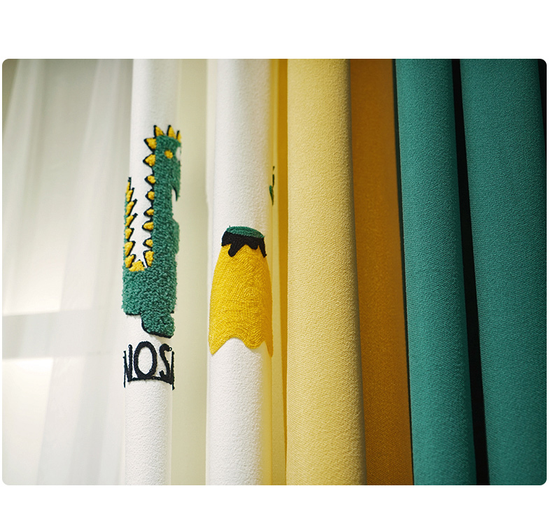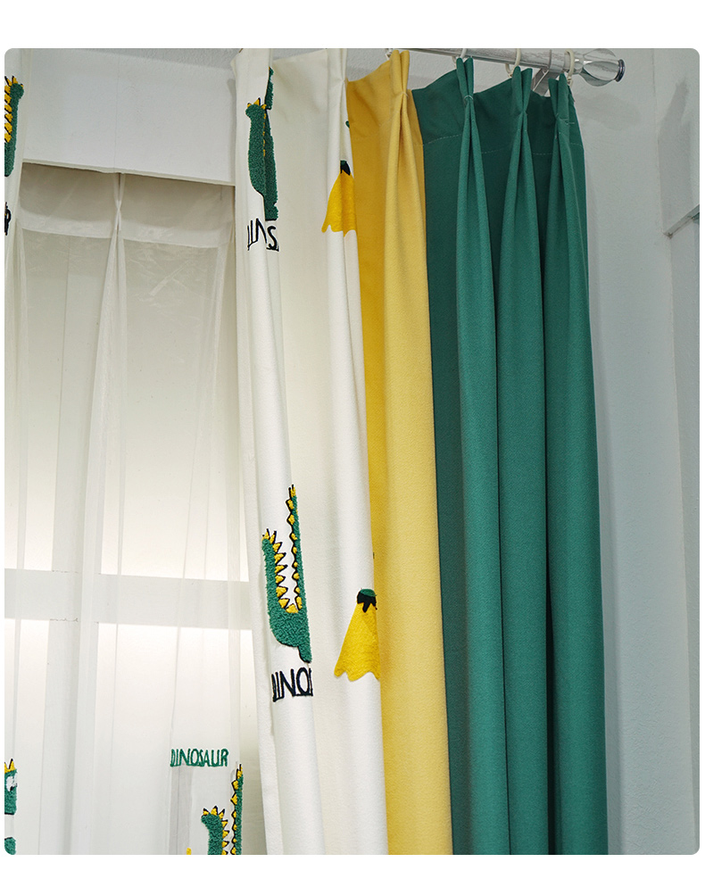 Easyfamilyカスタム完成品可愛いキャラクターデザイン恐竜刺繍子供部屋のカーテン男の子と女の子の寝室の窓のカーテンを縫い合わせて一メートル恐竜レース(幅1.4メートル/はい)