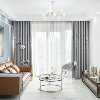 飛爾歌德(FG)吉鳥プリントの遮光カーテンリビングルームの書斎のベランダの新中国式簡単な完成品のカーテンカスタムグレーのカーテン(窓のベールを含まない)の幅3メートル*高さ2.7メートル-フック式の一枚(高さは短くすることができます)