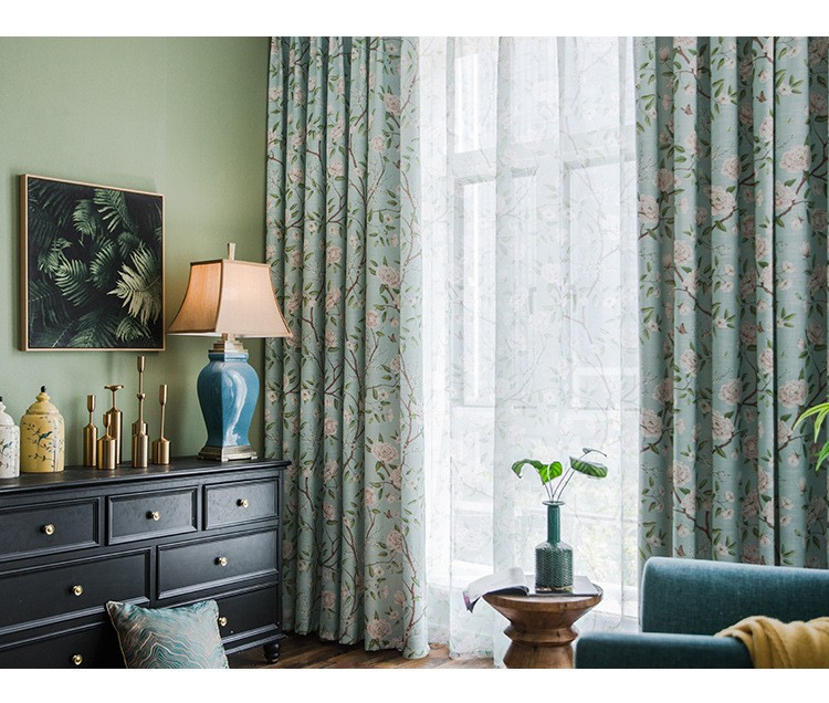 飛爾歌徳(FG)アメリカンカントリーカントリー綿麻カーテンリビングルームの書斎床の窓の下で窓の完成品のカーテンをカスタマイズして、青い緑の花のカーテン(窓の紗をくわえません)をオーダーメイドしてホック式の1メートルを掛けます(売り手に連絡します)。