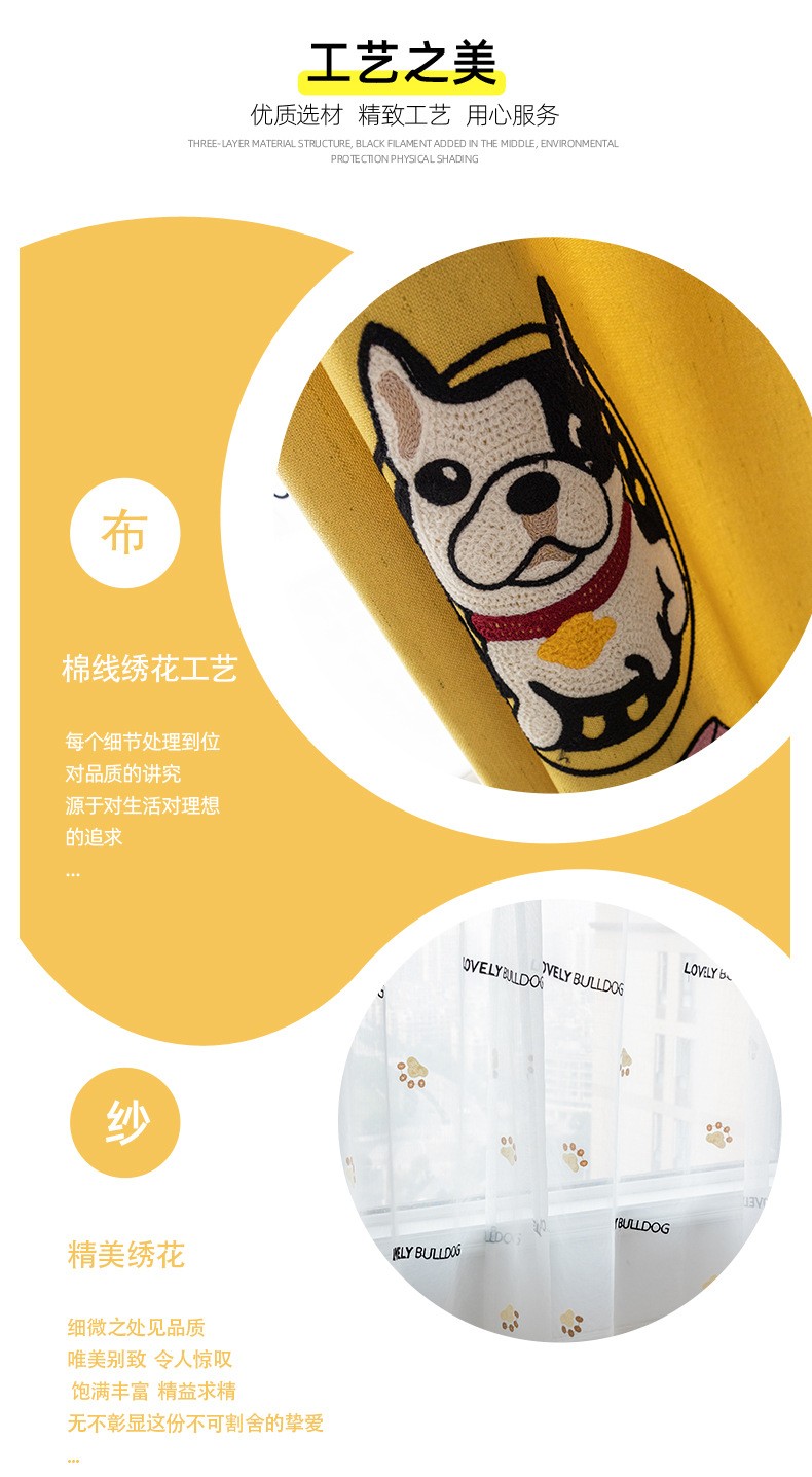 飛爾歌德(FG)英倫北欧黄色子犬漫画綿麻の質感刺繍カーテン子供部屋のカーテンカスタム黄色子犬刺繍カーテン(窓の紗を含まない)幅3 m*高さ2.7 m-フック式一枚(高度は短くなります。)