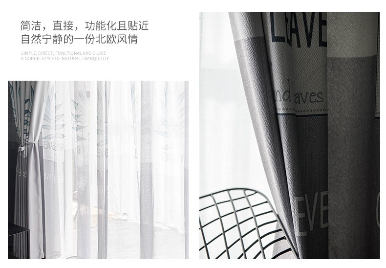 飛爾歌徳(FG)現代プリント遮光無色の葉っぱ緑植カーテンリビングルームの書斎バルコニーの床につくカーテンカーテンのオーダーメイド灰色のカーテン(窓のベールを含まない)の幅3メートル*高さ2.7メートル-フック式の一枚(高さは短くすることができます)