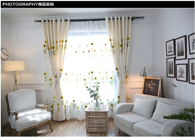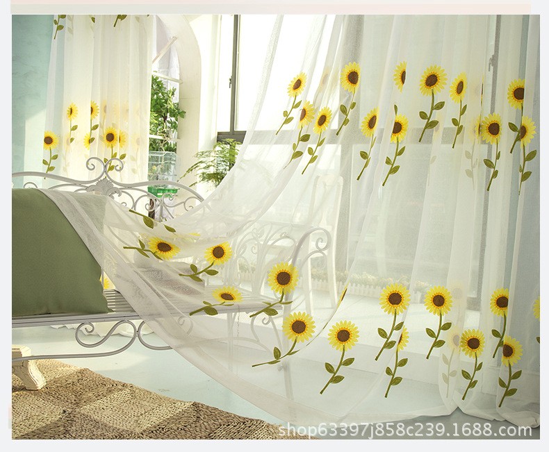 飛爾歌德(FG)子供用アニメヒマワリの図案の刺繍カーテンカーテンリビングルームの書斎のベランダの床に置くカーテンが窓の完成品のカーテンにカスタマイズされています。刺繍のヒマワリのカーテン(窓のベールをくわえません。)の幅が3メートル*高さが2.7メートルです。