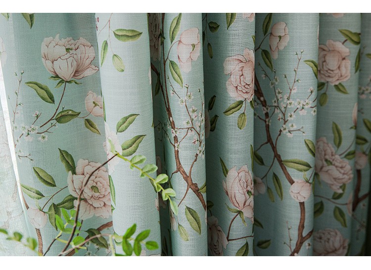 飛爾歌徳(FG)アメリカンカントリーカントリー綿麻カーテンリビングルームの書斎床の窓の下で窓の完成品のカーテンをカスタマイズして、青い緑の花のカーテン(窓の紗をくわえません)をオーダーメイドしてホック式の1メートルを掛けます(売り手に連絡します)。