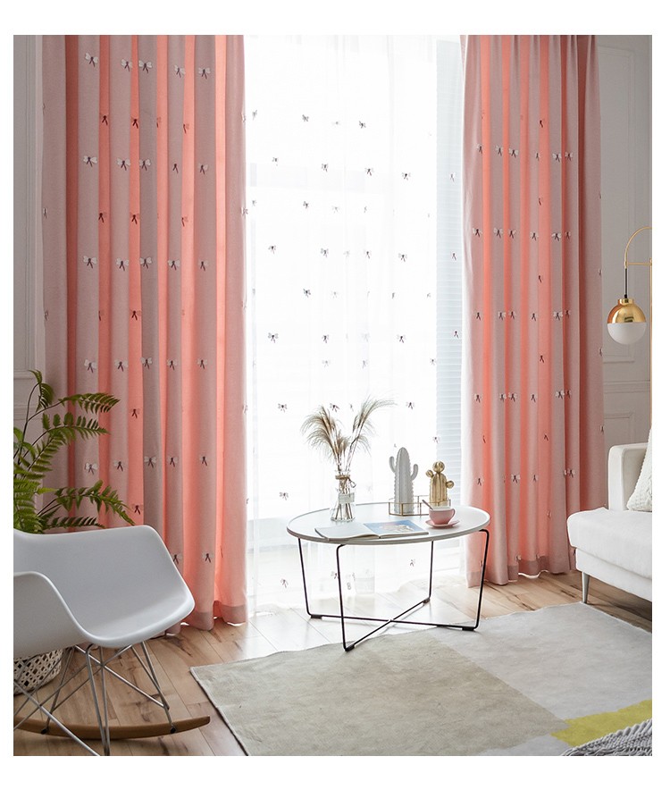 飛爾歌徳(FG)子供の綿麻の質感の浮き彫りアジサイの蝶のカーテンリビングルームの書斎の床に置くカーテンの翻る窓の女の子の部屋の王女の粉の完成品のカーテンはピンク色の浮き彫りの刺繍の蝶のカーテン(窓の紗をくわえません)を注文して作らせます。幅3メートル*高さ2.7メートル-フック式一枚です。