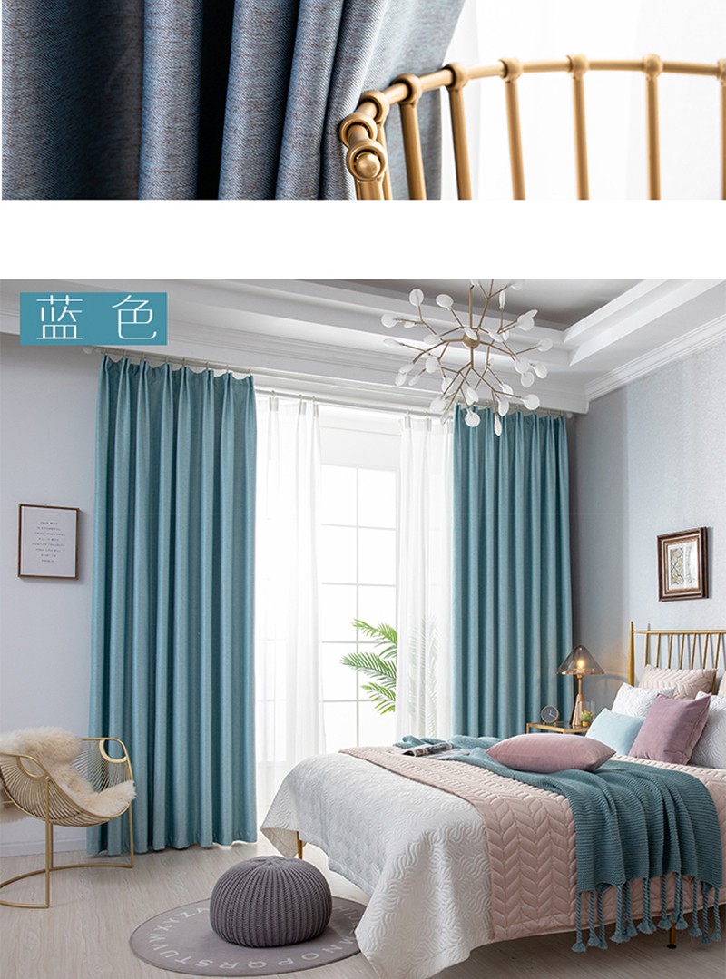 金の竿のカーテンの完成品は厚い海岛の麻の全遮光カーテンをプラスしてカーテンを布します。北欧の近代的な简単なネットの赤い布芸のリビングルームのベランダはサイズの穴をカスタマイズできます。