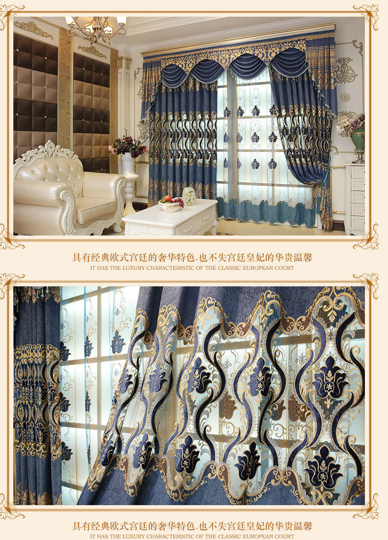 商品名称海度羅欧式シェニール刺繍カーテンの完成品は、厚い遮光リビングルームの寝室の床の窓の砂窓布をカスタマイズしてオーダーメイドできます。