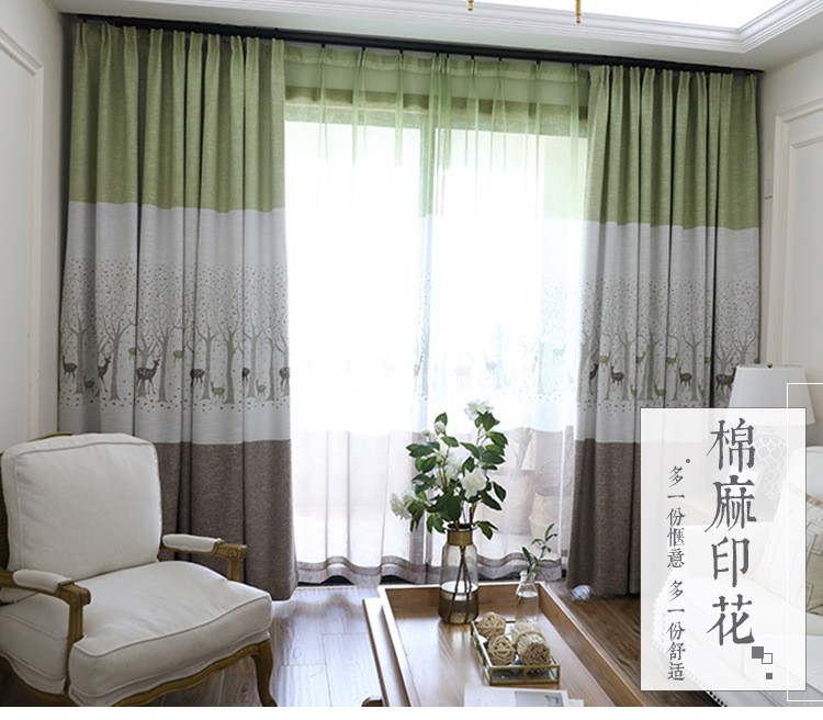 飛爾歌德(FG)子供綿麻プリントの半遮光カーテン-鹿リビングルームの寝室のベランダの床にカーテンがかかっています。カーテンをカスタマイズしました。幅3 m*高さ2.7 m-フック式の一枚です。